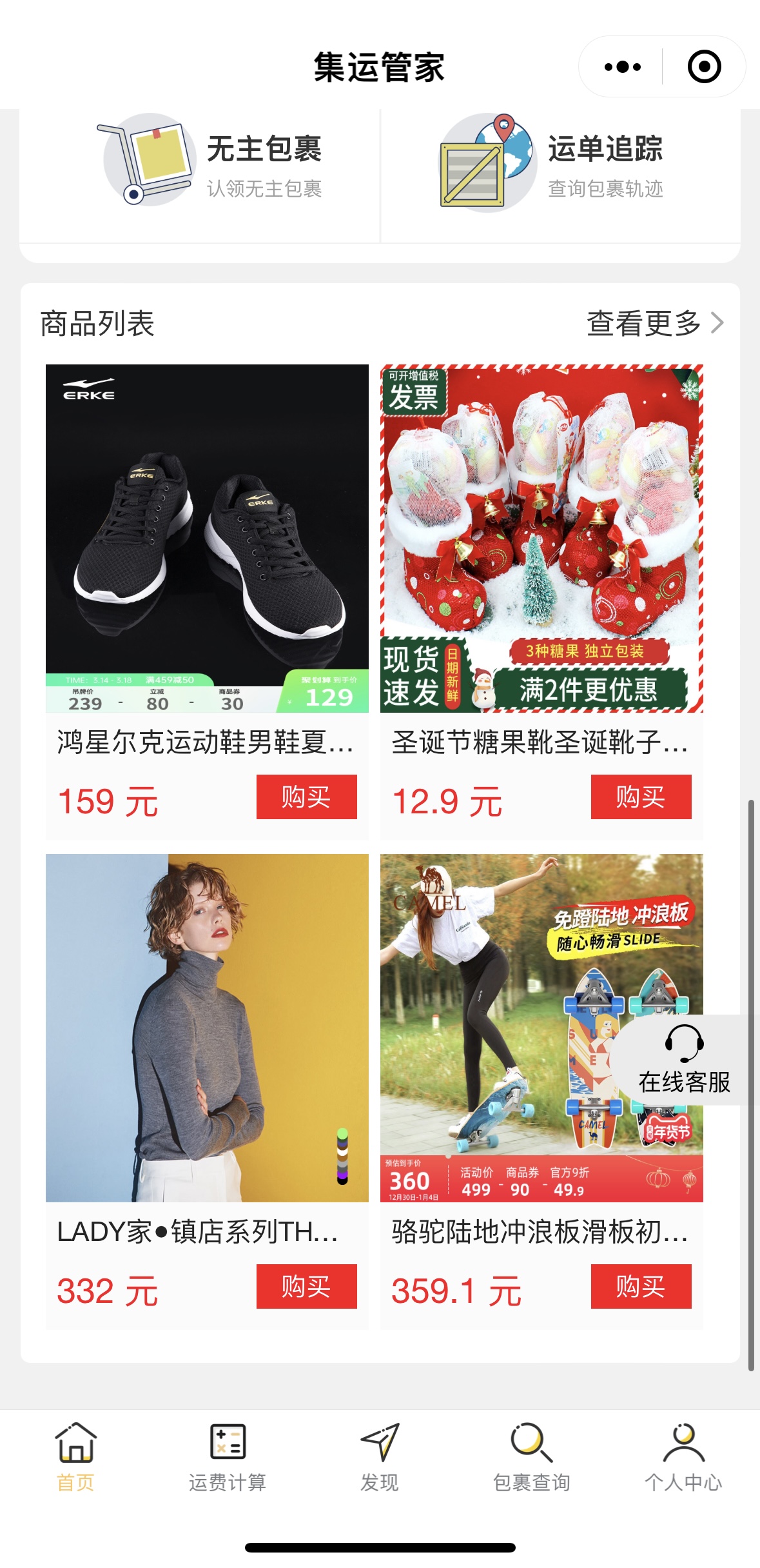 嗨轉寶集運小程序功能截圖